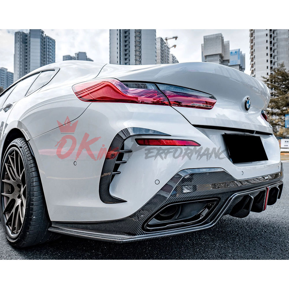 01 Karbel Style Dry Carbon Fiber Rear Bumper Canards For BMW 8 Series G14 G15 G16 2018-2025